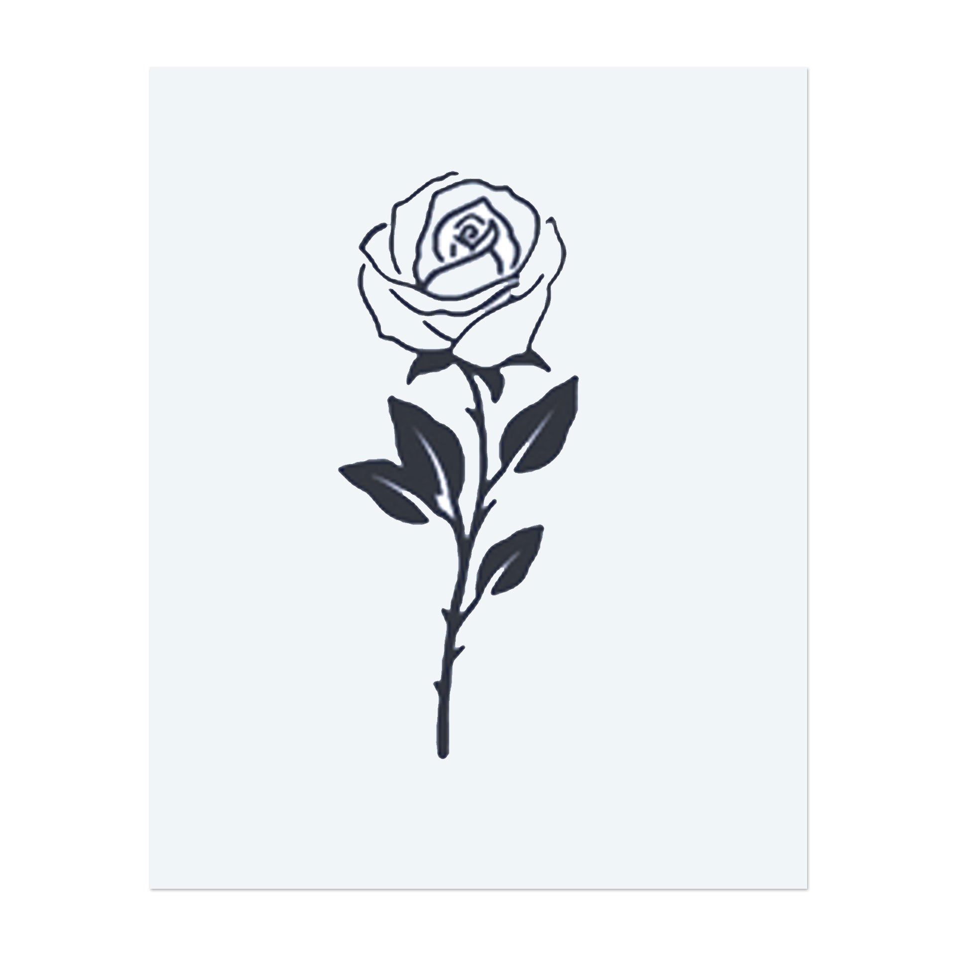 Une rose délicate avec de longs pétales et des feuilles élégantes. Ce tatouage symbolise l'amour, la beauté et l'élégance et est parfait pour ceux qui apprécient la simplicité et la beauté intemporelle.